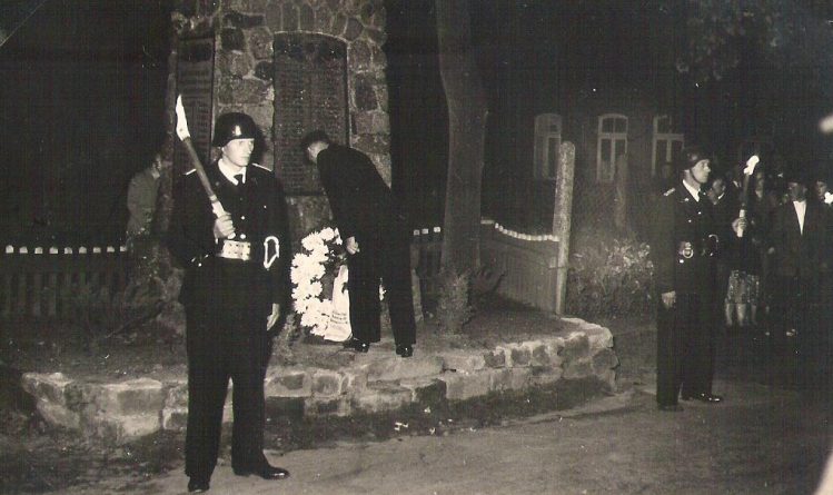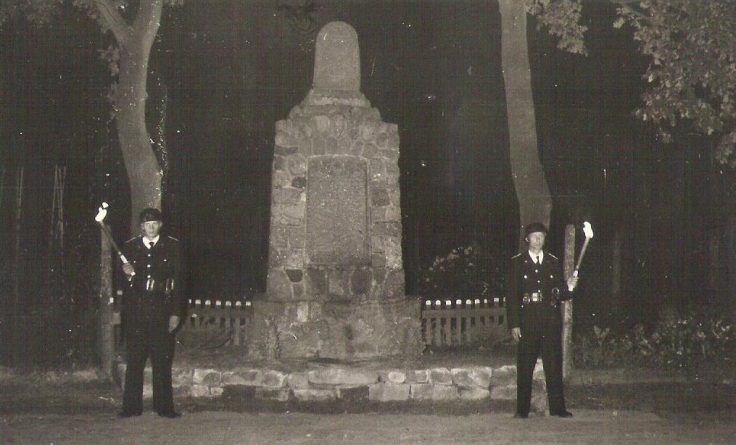 Fotos der Kranzniederlegung am Ehrenmal während des Kreis-Feuerwehrverbandstages am 10. August 1958